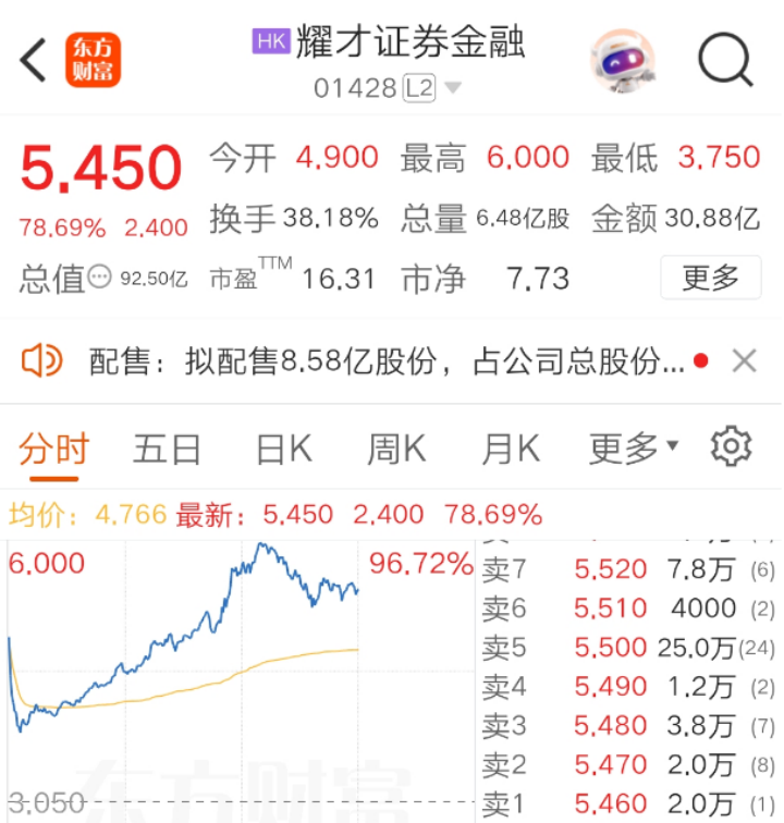 根据耀才证券公告,买卖双方已于4月25日签订协议,交易股份约8.58亿股,占已发行股份总数的约50.55%,总现金代价为28.14亿港元,且已支付了10%的按金。要约收购价格为3.28港元/股,较耀才证券最后交易日在香港联交所的收市价2.79港元/股溢价约17.6%。